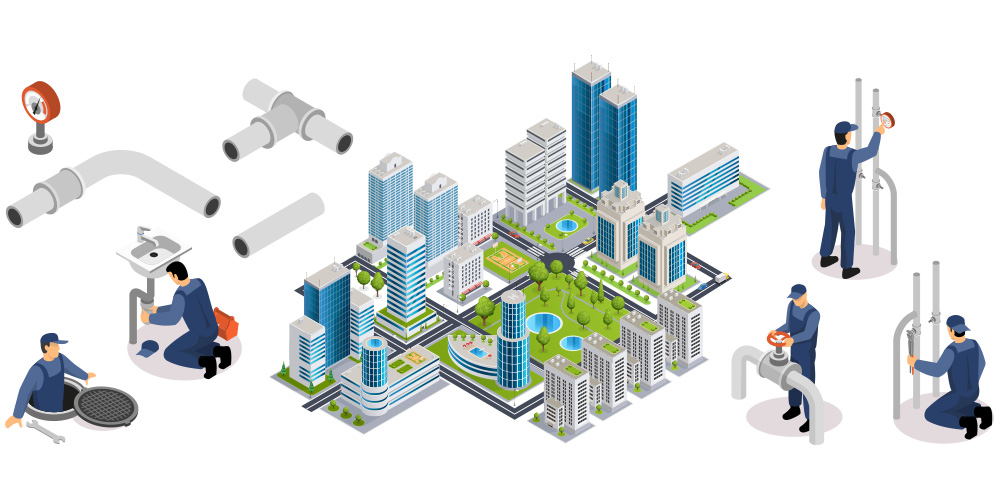 私たちは公共インフラをはじめ、工場・オフィスビル・住居などの配管や設備機器、土木資材などを供給しています。